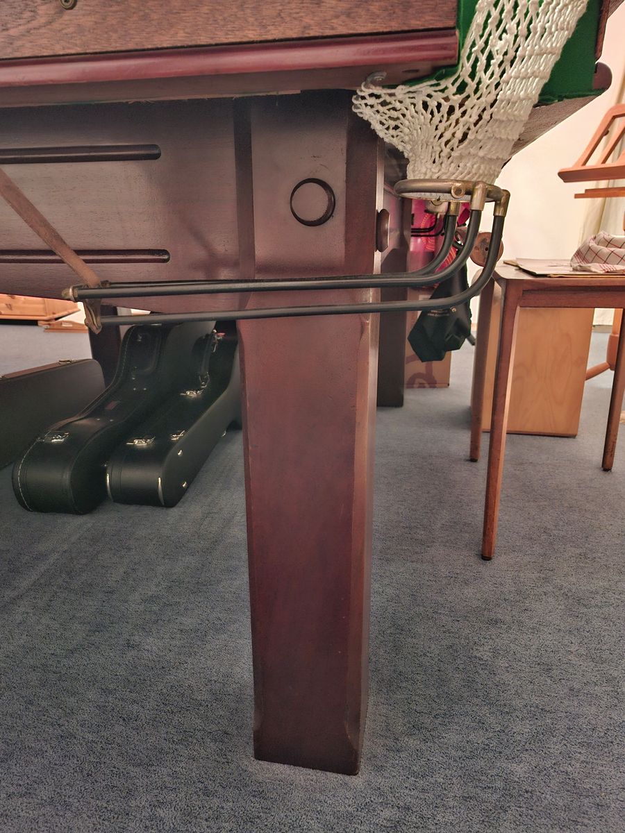 Dieser 12ft. Snookertisch von Konway steht im Süden Baden-Württembergs und befand sich seit 2005 in privatem Besitz. In dieser Zeit wurde er nur einmal mit neuem Tuch bezogen, was bedeutet, dass er wenig gespielt wurde und die Bandenhölzer, die am schnellsten Verschleiß aufweisen, in sehr gutem Zustand sind und lange nicht gewechselt werden müssen.