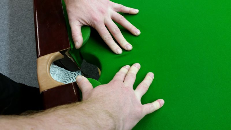 Nachteil bei dieser Methode ist, dass auf der Spielfläche um die Mitteltasche rum das Tuch lockerer ist als am Rest der Spielfläche.